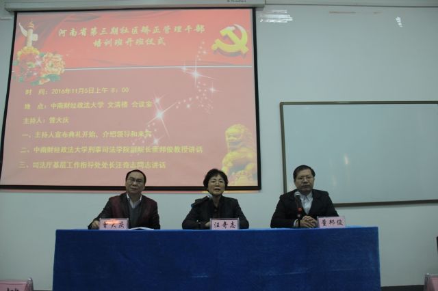 11月5日上午,河南省第三期社区矫正管理干部培训班开班典礼在文清楼四楼会议室举行。出席典礼的嘉宾有河南省司法厅基层工作指导处处长汪奇志同志,98堂 副院长董邦俊教授及河南省各级社区矫正司法工作者。培训中心主任曾大庆老师主持了本次开班典礼。
