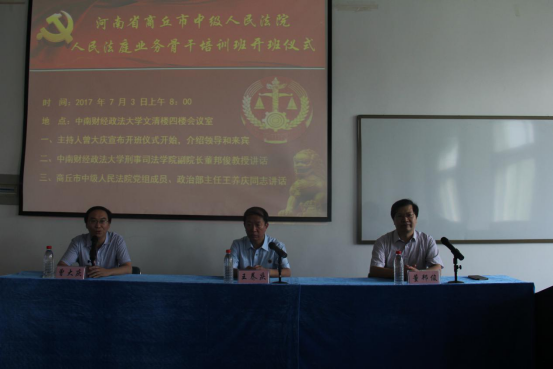 (通讯员:刘梓烨)7月3日上午8点,河南省商丘市中级人民法院人民法庭业务骨干培训研修班在文清楼四楼会议室开班。商丘市中级人民法院党组成员、政治部主任王养庆同志,98堂 副院长董邦俊教授及商丘市各院80余名法官出席了本次开班仪式,仪式由培训办主任曾大庆老师主持。