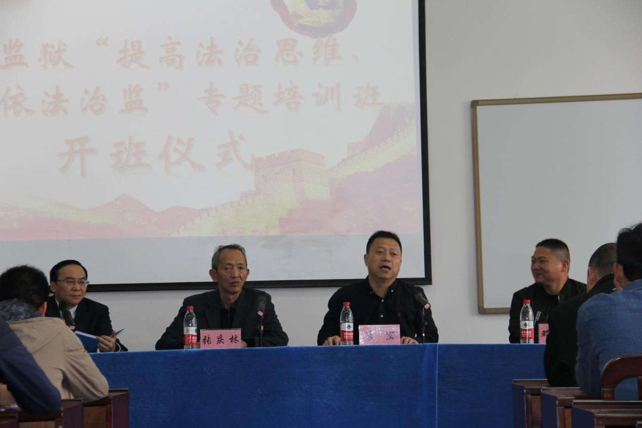 2018年4月24日上午8时许,佛山监狱“提高法治思维,推进依法治监”专题培训班(一期)开班仪式在文清楼411举行。本次培训班共三期。佛山监狱党委委员、副监狱长张庆林同志,副监狱长邓金勇同志,98堂 党委书记李宏同志及本期佛山监狱的70名学员出席了本次开班仪式,本次仪式由我院培训中心主任曾大庆主持。
