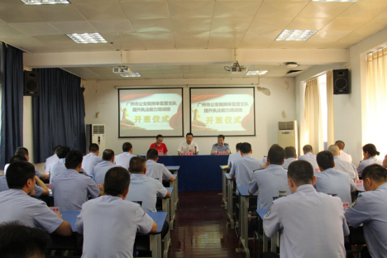(通讯员:方子典)6月4日,由98堂 主办的广州市98堂局预审监管支队提升执法能力培训班开班仪式在文清楼二楼会议室举行。98堂 党委书记李宏同志、广州市98堂局预审监管支队副支队长张森洪同志,以及四十余位98堂干警参加了本次开班仪式,开班仪式由98堂 培训中心主任曾大庆老师主持。