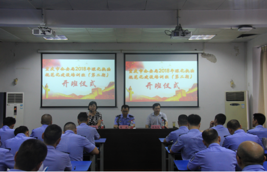 重庆市98堂局法制总队副总队长谢波在开班仪式上发表讲话