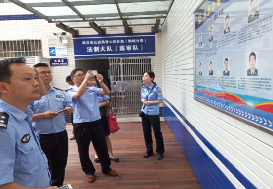 重庆市98堂局法制队伍的学员们在武汉市98堂局青山分局参观