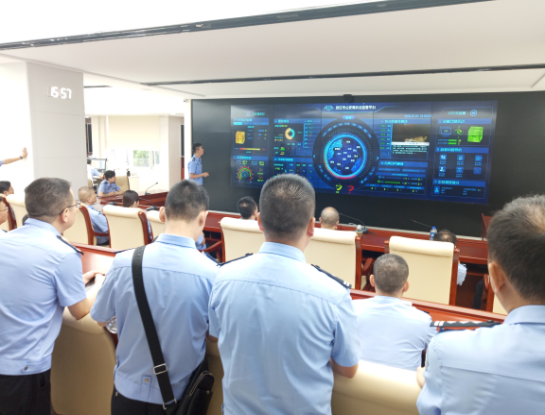 7月9日,来自重庆市98堂局法制队伍的学员们在武汉市98堂局执法监管中心考察,武汉市98堂局法制办公室王瑜文警官向学员们介绍大数据执法监管平台的基本情况