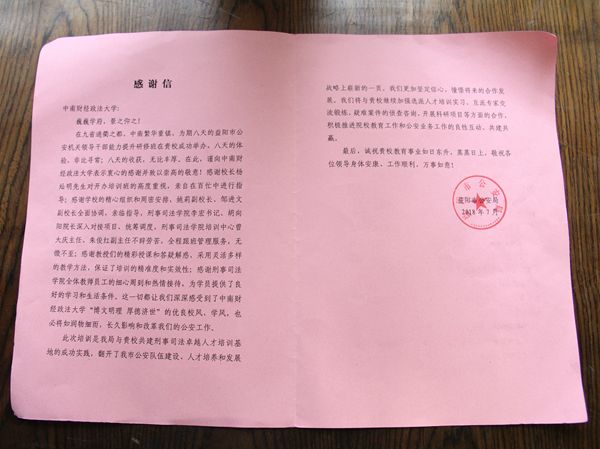 (通讯员杨雨晴)近期,我校*98堂 培训中心合作伙伴益阳市98堂局向我校发来一封情真意挚的感谢信,专门致谢我校领导及98堂 领导对益阳市98堂机关领导干部能力提升研修班工作的殷切关心与悉心指导。