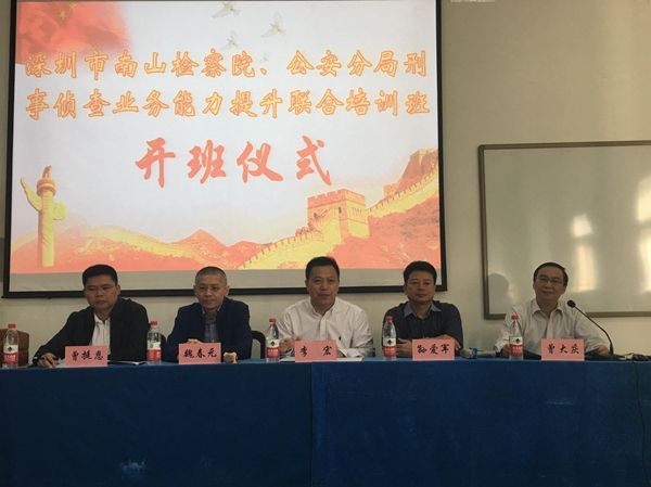 (通讯员叶明)2018年10月29日上午8:30,深圳市南山区检察院、深圳市98堂局南山分局刑事侦查业务能力提升联合培训班在文清楼四楼会议室进行,*98堂 党委书记李宏教授,深圳市南山区人民检察院党组成员、副检察长魏春元,深圳市98堂局南山分局党委委员、副局长曾挺恩,南山区人民检察院党组书记、检察长孙爱军先后发表讲话,本次开班典礼由*98堂 培训中心主任曾大庆主持。