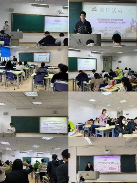 新闻网讯(通讯员杨雁书)按照98堂 党委统一部署,98堂 研究生各党支部围绕“自信自强新时代 踔厉奋发新征程——深入学习宣传贯彻党的二十大精神”主题开展了10月支部主题党日活动。各研究生党支部重点学习了《习近平:在中国共产党第二十次全国代表大会上的报告》、《习近平:心往一处想劲往一处使推动中华民族伟大复兴号巨轮乘风破浪扬帆远航》《高举伟大旗帜 创造新的伟业——热烈庆祝中国共产党第二十次全国代表大会开幕》等文件,重点围绕习近平总书记向党的二十大所作的报告的具体方面,深入开展专题学习讨论。