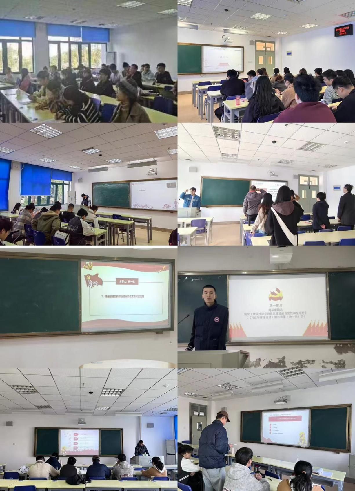 23级刑法学党支部吕志斌同志分享深入学习习近平总书记在中共中央政治局第六次集体学习时的讲话精神心得,他表示始终坚持解放思想、实事求是、与时俱进、求真务实使马克思主义在中国焕发出强大生命力的关键。