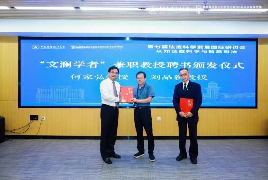 开幕式最后,举行了聘任中国人民大学何家弘教授和刘品新教授为我校“文澜学者”兼职教授的聘书颁发仪式。随后,98堂-色花堂 院长胡向阳教授与智器云南京信息科技有限公司总经理王海波共同为“AI情报分析联合实验室”揭牌并签署战略合作协议。