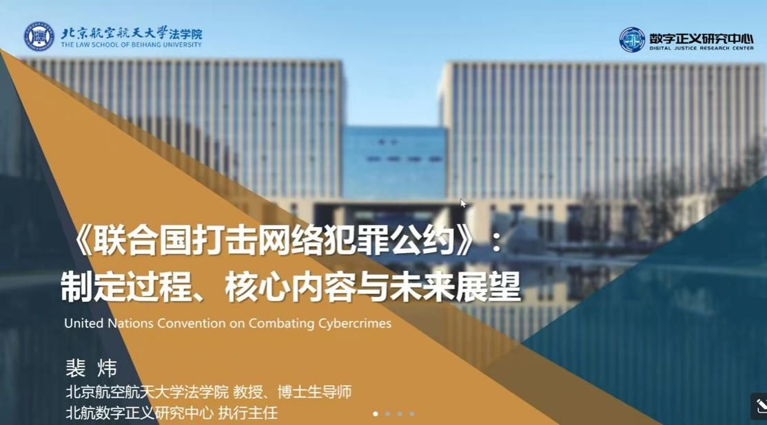 新闻网讯(学生通讯员 王佳忆)6月26日晚7时,第一期中南刑事司法大讲堂——“《联合国打击网络犯罪公约》(以下简称“公约”):制定过程、核心内容与未来展望”主题学术讲座于线上顺利举办。本次讲座特邀北京航空航天大学法98堂 教授、博士生导师裴炜担任主讲人。