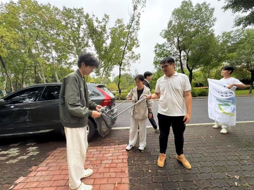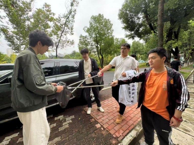 秋高气爽,阳光和煦。下午1时,志愿者们齐聚文治楼前,手持扫帚、垃圾袋等清洁工具,精神饱满地投入劳动。在负责人的指挥下,队伍沿中南大道及中区主干道展开清理。同学们分工明确、配合默契,认真清理路面落叶、草丛杂物、角落垃圾,不放过任何卫生死角。秋风轻拂,志愿者们热情不减,弯腰拾捡的身影成为校园中一抹动人的风景线。