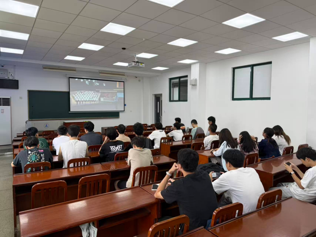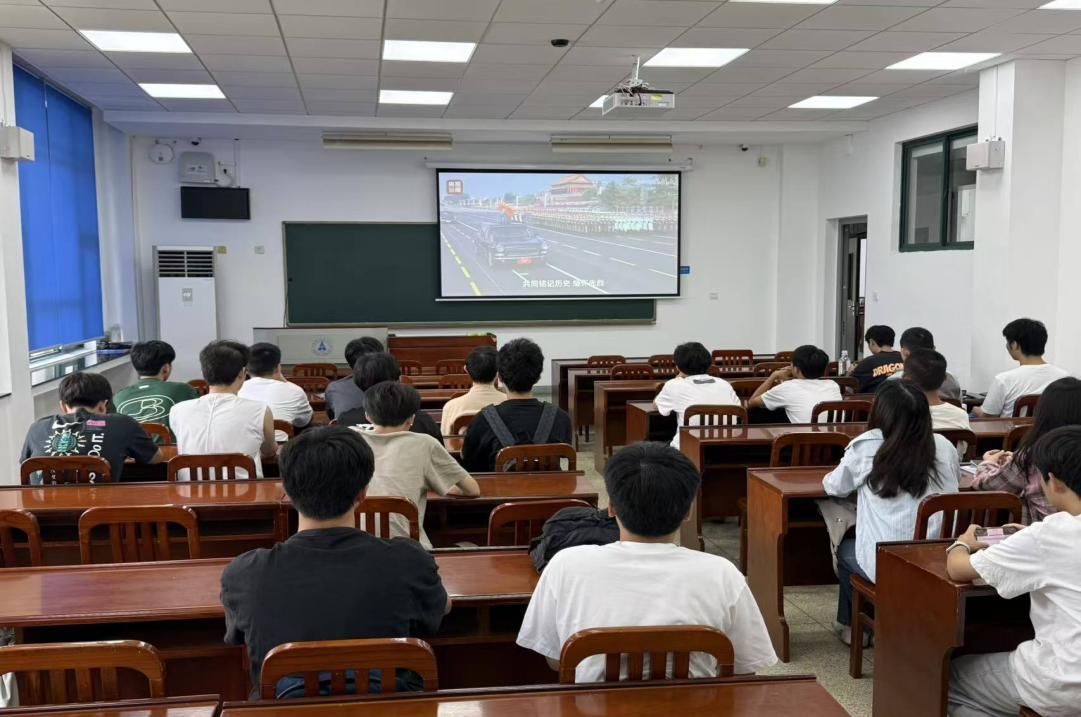 活动第一项,团支书带领全体同学观看“弘扬伟大抗战精神,做光荣自豪中国人——纪念中国人民抗日战争暨世界反法西斯战争胜利80周年”思政课程。课程不仅带同学们回顾了革命先烈浴血奋战的艰难历程,也展现了百年来中国在国际舞台上的责任与担当。