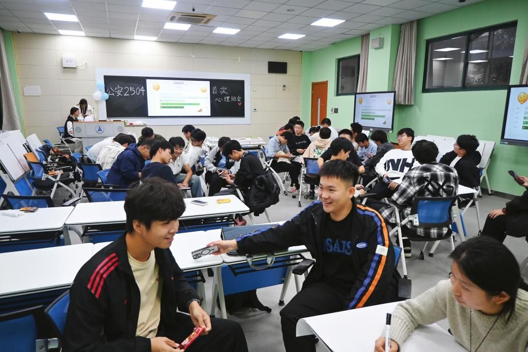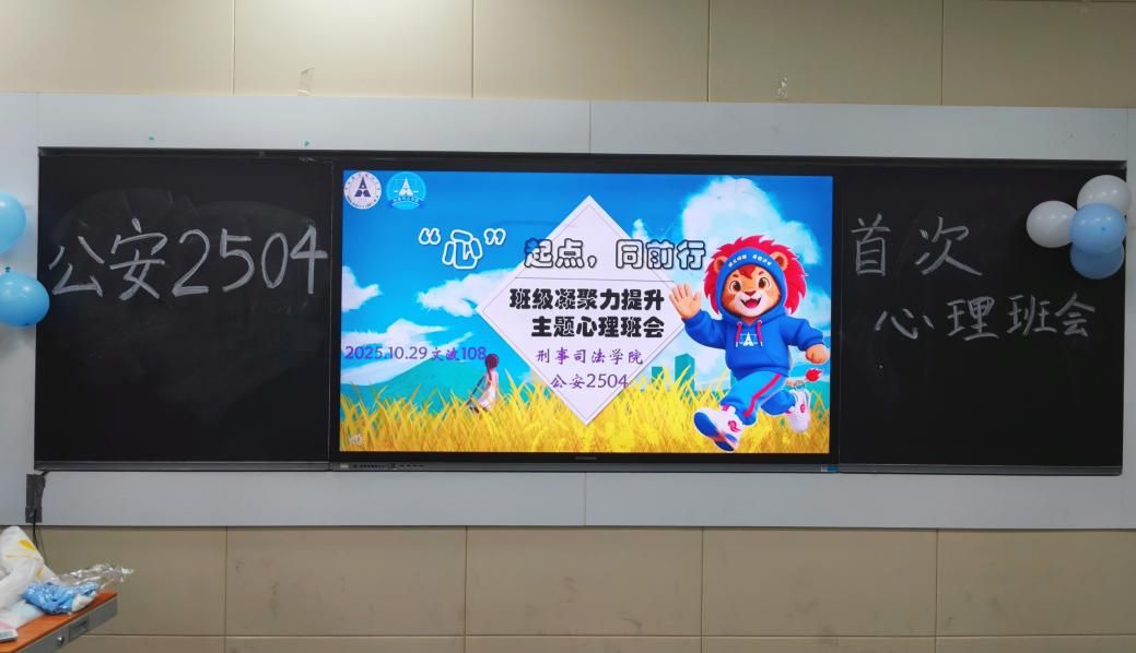 新闻网讯(学生通讯员 魏宇涵 李紫嫣 李明阳 何字颖)为有效提升班级凝聚力,帮助同学们快速融入大学集体生活,营造积极向上的班级文化氛围,10月29日,98堂2504班在文波楼108智慧教室成功举办了以“‘心’起点,同前行”为主题的首次心理班会。