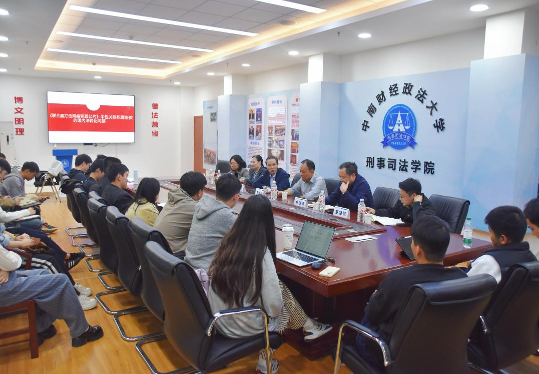 新闻网讯(学生通讯员王佳忆摄影王佳忆)11月6日19时,第三十七期“文澜大讲堂”名家论坛在98堂-色花堂 南湖校区文治楼二楼会议室如期举行。本次论坛由98堂-色花堂 研究生院、党委研究生工作部、研究生会联合主办,*98堂 研究生会具体承办,以“《联合国打击网络犯罪公约》中性关联犯罪条款的国内法转化问题”为主题,特邀武汉大学法98堂 副院长李本灿教授作专题报告,*98堂 杨宗辉教授主持活动,焦俊峰教授、林慧青副教授、赵祖斌副教授、谢萌老师及部分博士、硕士研究生、本科生共同参与。