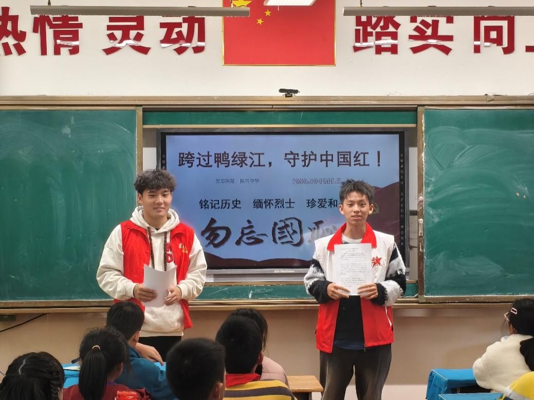 新闻网讯(学生通讯员陈诗睿)10月23日,*98堂 志愿者协会星火志愿服务队前往武汉市光谷第五小学,开展“跨过鸭绿江,守护中国红”爱国主义主题教育宣讲活动。活动聚焦抗美援朝战争的光辉历史与伟大精神,通过详实讲述、互动问答、英雄故事等多种形式,引导青少年铭记历史、缅怀先烈、珍爱和平,从中汲取砥砺前行的精神力量。