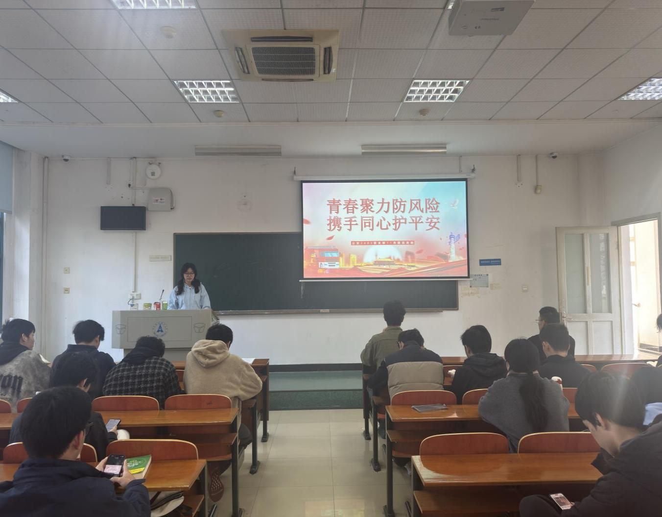 在“青年如何守护校园安全”的讨论中,同学们踊跃发言,支部成员罗子菁提出,要常态化排查宿舍安全隐患、主动传播安全知识、熟练掌握应急技能,以实际行动守护校园平安,彰显青年担当。
